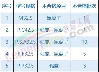 經(jīng)檢測(cè),共檢出不合格水泥20批次,不合格率高達(dá)23.5%。其中抗壓、抗折強(qiáng)度不合格13個(gè)批次,氯離子含量超標(biāo)不合格10個(gè)批次,不合格項(xiàng)目及批次為: