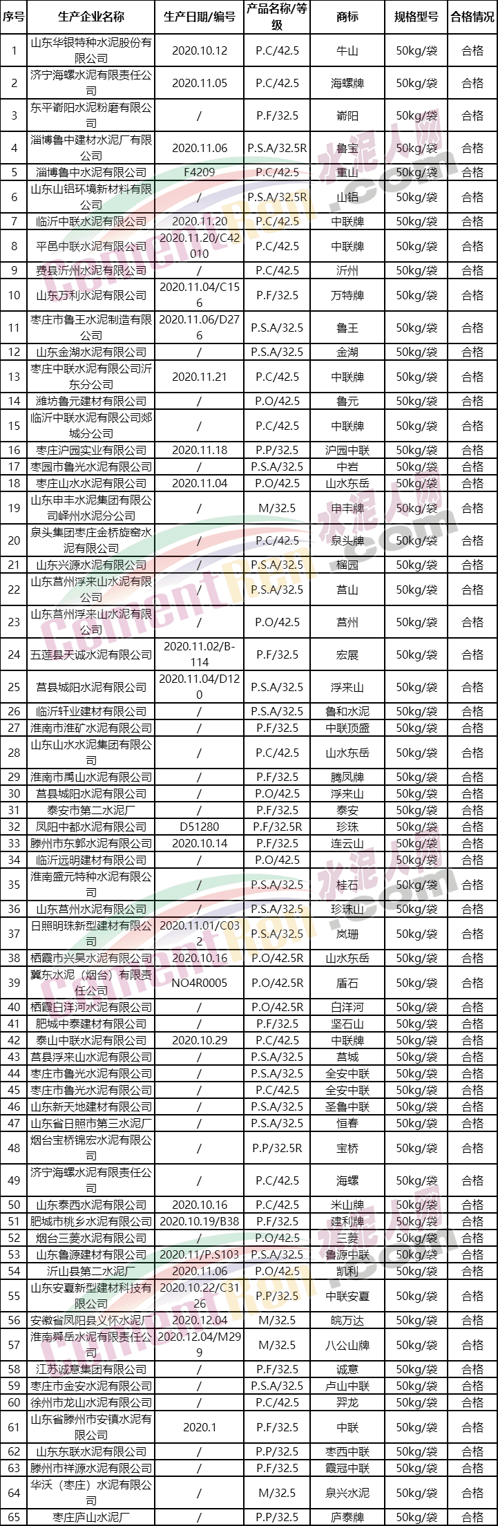 抽檢合格水泥產(chǎn)品名單