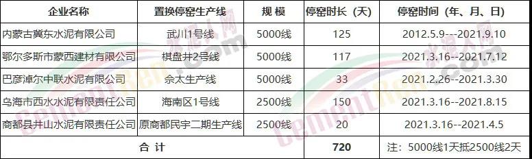 非電石渣水泥熟料企業(yè)“錯峰置換”停窯清單