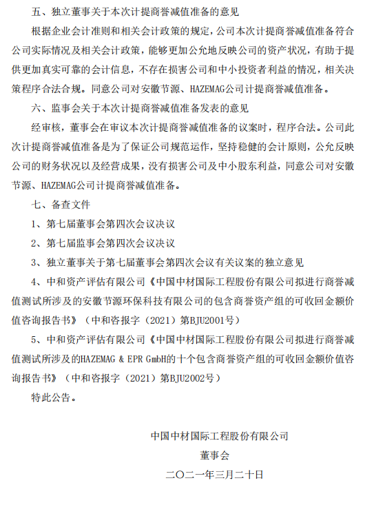 公司同期公告,公司對(duì)全資子公司安徽節(jié)源環(huán)??萍加邢薰?“安徽節(jié)源”)計(jì)提商譽(yù)減值準(zhǔn)備9506.31萬元,對(duì)控股子公司德國HAZEMAG EPR GmbH(“HAZEMAG公司”)計(jì)提商譽(yù)減值準(zhǔn)備846.32萬歐元,折合人民幣6791.72萬元,均計(jì)入公司2020年年度損益,使2020年度歸屬于上市公司股東的凈利潤減少1.63億元。
