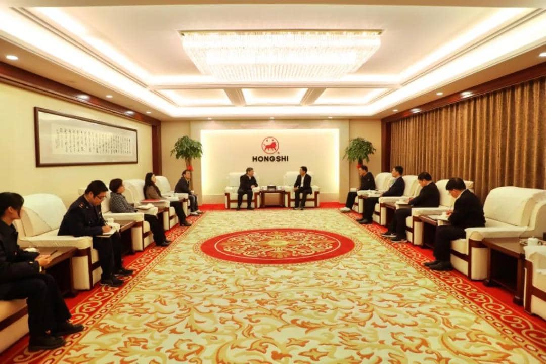 3月24日上午,金華市市場監(jiān)督管理局局長趙國榮來紅獅集團(tuán)開展“三服務(wù)”活動(dòng),并為集團(tuán)獲得的“2020浙江省民營企業(yè)100強(qiáng)”稱號(hào)授牌。紅獅集團(tuán)董事長章小華熱情接待趙局長一行。