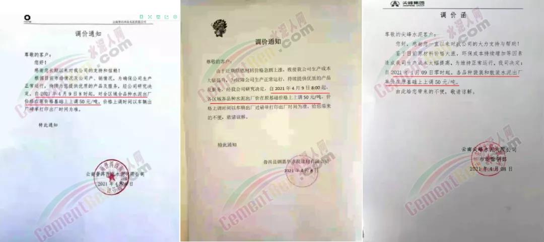 福建水泥股份有限公司南平南銷售區(qū)域通知,自4月9日起,公司各生產(chǎn)基地發(fā)往南平南區(qū)域各品種、袋散裝水泥的出廠含稅價(jià),在原有價(jià)格基礎(chǔ)上上調(diào)40元/噸。
