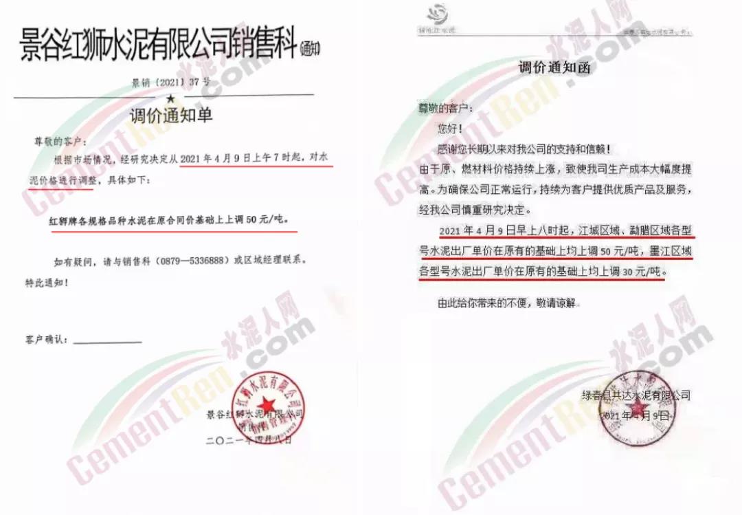 4月10日,紹興萬年青水泥有限公司通知根據(jù)目前水泥銷售市場(chǎng)形勢(shì),結(jié)合本公司原材料價(jià)格大幅度上漲,經(jīng)公司研究決定,自4月11日起,32.5、42.5散、包裝水泥出廠價(jià)在原來基礎(chǔ)上每噸各上調(diào)30元。
