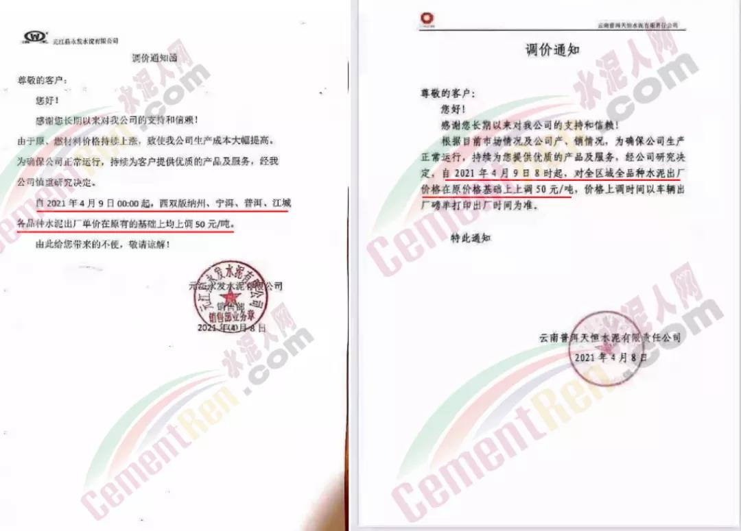 4月10日,唐山弘也水泥有限公司通知由于環(huán)保力度的持續(xù)加大,水泥生產(chǎn)用熟料、水泥石、礦粉等材料價(jià)格大幅度上漲,致使生產(chǎn)成本提高。故公司根據(jù)水泥成本增長(zhǎng)及市場(chǎng)情況,自4月11日0時(shí)起所有水泥產(chǎn)品價(jià)格在原有的基礎(chǔ)上每噸上調(diào)30元。