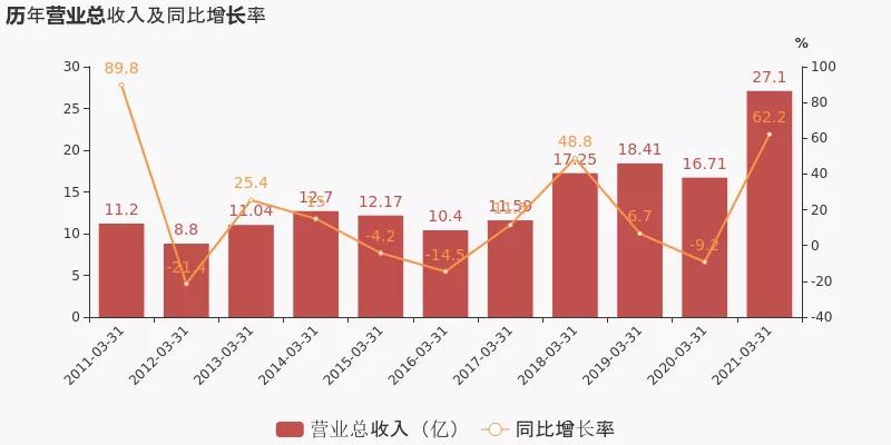 萬年青于2021年4月23日披露一季報,公司2021年一季度實現(xiàn)營業(yè)總收入27.1億,同比增長62.2%;實現(xiàn)歸母凈利潤3.2億,同比增長28.8%;每股收益為0.41元。報告期內(nèi),公司毛利率為26.2%,同比降低15.0個百分點,凈利率為16.4%,同比降低7.7個百分點。
