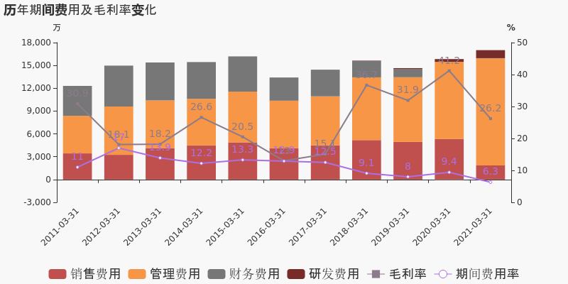 公司2021一季度營業(yè)成本20億,同比增長103.7%,高于營業(yè)收入62.2%的增速,導致毛利率下降15%。期間費用率為6.3%,較去年下降3.2%,費用管控效果顯著。經(jīng)營性現(xiàn)金流近兩期均為負,本期為-1.2億,上期為-2.5億。