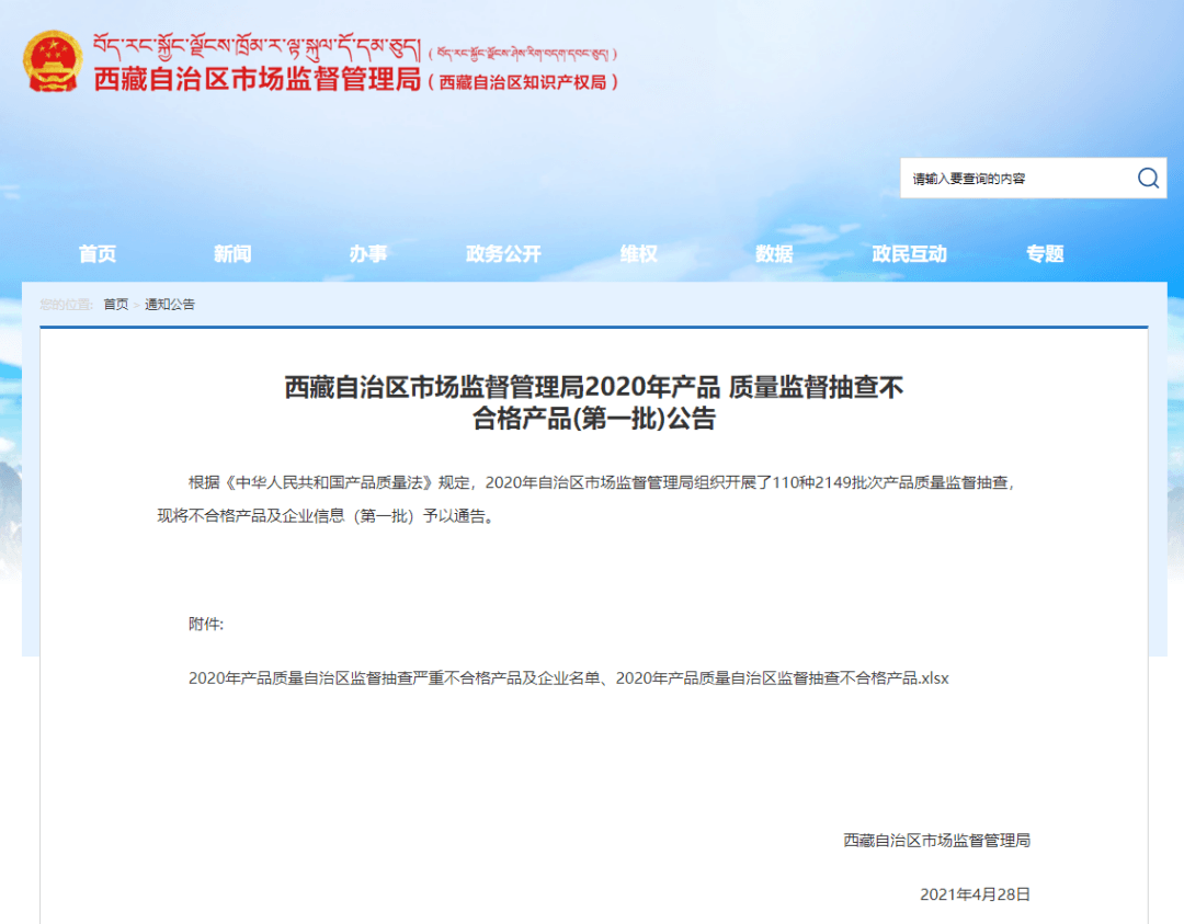 2020年第六批工業(yè)產(chǎn)品質(zhì)量市級監(jiān)督抽查結(jié)果