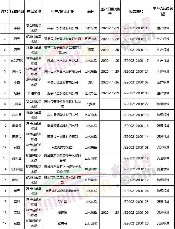 同期,山東省聊城市市場監(jiān)督管理局發(fā)布 《2020年第六批工業(yè)產(chǎn)品質(zhì)量市級監(jiān)督抽查結(jié)果》稱,根據(jù)《聊城市市場監(jiān)督管理局關(guān)于組織開展2020年第六批工業(yè)產(chǎn)品質(zhì)量監(jiān)督抽查工作的通知》(聊市監(jiān)便字〔2020〕169號)要求,將監(jiān)督抽查結(jié)果予以公布。其中,水泥產(chǎn)品一個批次不合格,來自于流通領(lǐng)域。銷售企業(yè)為臨清市東關(guān)建材門市部。不合格項目為1、抗壓強度(3d)2、抗折強度(3d)3、燒失量。不合格商標為“五行山水”。