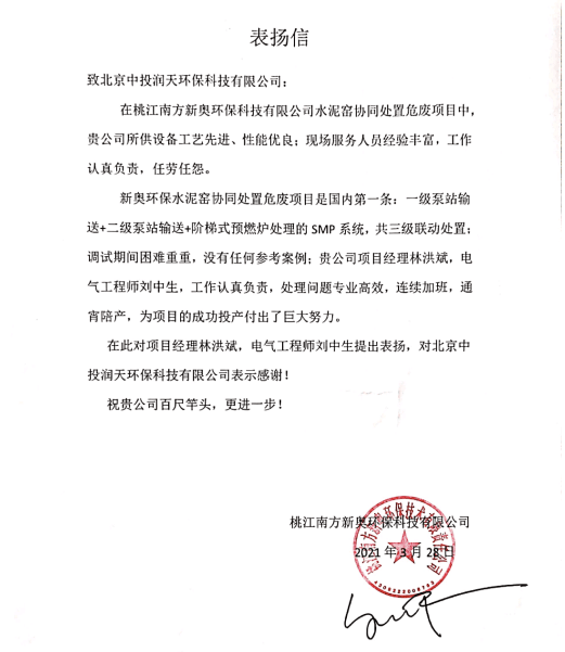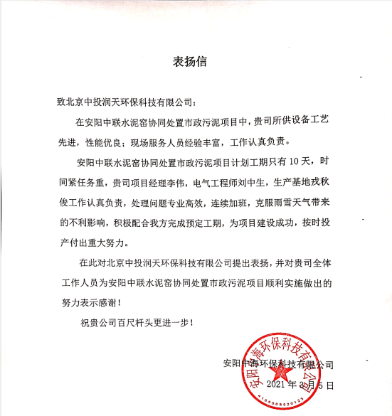 作為項(xiàng)目之本,履約質(zhì)量、工期質(zhì)量、服務(wù)保障質(zhì)量發(fā)展已成為潤(rùn)天環(huán)保新的金字招牌。近日,南方水泥、中聯(lián)水泥、杰夏環(huán)保、新奧環(huán)保、礦峰集團(tuán)等多家單位向潤(rùn)天環(huán)保致函、致電,對(duì)于潤(rùn)天項(xiàng)目的整體水準(zhǔn),以及現(xiàn)場(chǎng)項(xiàng)目經(jīng)理團(tuán)隊(duì)的敬業(yè)精神與專業(yè)水平,均提出了高度贊揚(yáng)。