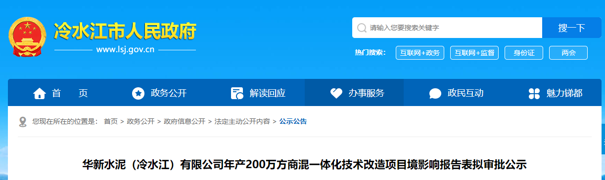 根據建設項目環(huán)境影響評價審批程序的有關規(guī)定,我局擬對《華新水泥(冷水江)有限公司年產200萬方商混一體化技術改造項目環(huán)境影響報告表》進行審查?,F將擬審查的環(huán)境影響評價文件基本情況予以公示,公示期為2021年5月7日——2021年5月12日(5個工作日)。聽證權利告知:依據《中華人民共和國行政許可法》,自公示起五日內申請人、利害關系人可提出聽證申請。