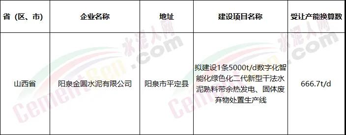據(jù)水泥人網(wǎng)了解,前不久山西省工信廳發(fā)布了《山西汾西礦業(yè)(集團)有限責任公司水泥廠產(chǎn)能出讓公示》稱將退出位于晉中市介休市龍鳳鎮(zhèn)龍鳳村的山西汾西礦業(yè)(集團)有限責任公司水泥廠的1000t/d熟料生產(chǎn)線,用于山西省陽泉金圓水泥有限公司建設(shè)1條5000t/d數(shù)字化智能化綠色化二代新型干法水泥熟料帶余熱發(fā)電、固體廢棄物處置生產(chǎn)線。公示日期截止到今日(5月13日)如公眾未提出異議,或?qū)⒂诮照桨l(fā)布公告。