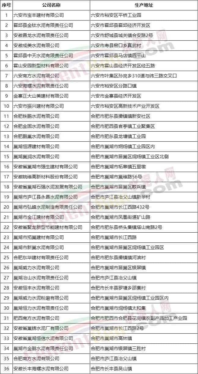 據(jù)安徽省工信廳此前發(fā)布數(shù)據(jù),安徽省熟料產(chǎn)能達(dá)13300萬噸,其中合肥市和六安市36家水泥企業(yè)12條熟料生產(chǎn)線,涉及中材水泥 、海螺水泥、皖維高新等多家熟料生產(chǎn)企業(yè),涉及熟料產(chǎn)能1412萬噸以上。