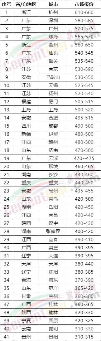 5月17日部分區(qū)域PO42.5散裝水泥市場報(bào)價(jià)