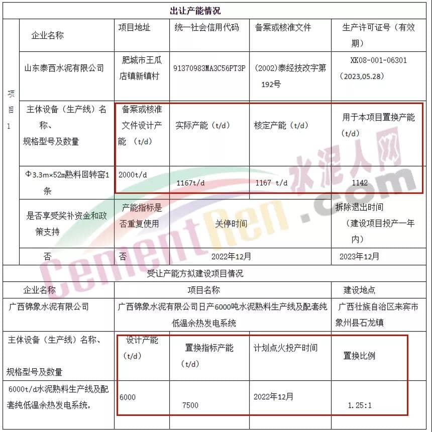 根據(jù)工信部《關于印發(fā)鋼鐵水泥玻璃產(chǎn)能置換實施辦法的通知》(工信部原[2017]337號)和《水泥玻璃行業(yè)產(chǎn)能置換實施辦法操作問答》的有關規(guī)定,泰安市山東泰西水泥有限公司制定產(chǎn)能置換方案,擬將該公司位于泰安市的一條1167t/d水泥熟料生產(chǎn)線的產(chǎn)能轉讓給省外企業(yè),現(xiàn)將有關情況予以公示,歡迎社會公眾進行監(jiān)督。