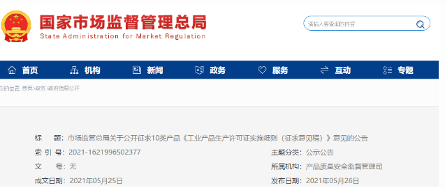 市場監(jiān)管總局關(guān)于公開征求10類產(chǎn)品