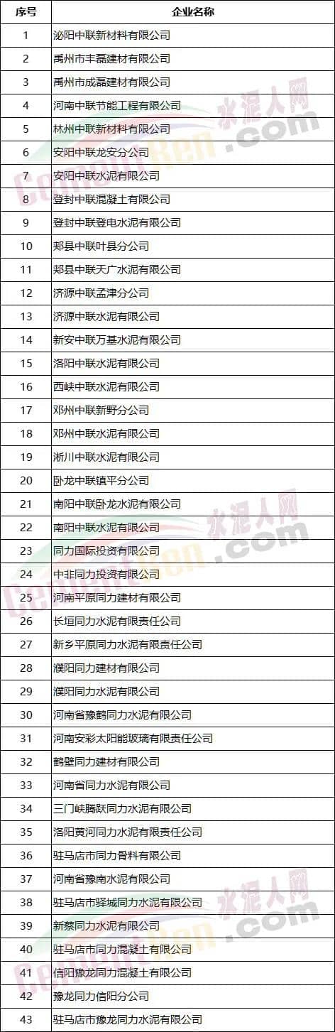 涉及企業(yè)如下表: