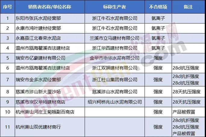 此前,浙江省市場(chǎng)監(jiān)督管理局發(fā)布《關(guān)于2020年流通領(lǐng)域?qū)嶓w店產(chǎn)品質(zhì)量監(jiān)督抽查情況的通報(bào)》中顯示不合格的13個(gè)批次水泥產(chǎn)品中包括11個(gè)批次砌筑水泥M32.5產(chǎn)品,不合格項(xiàng)目涉及強(qiáng)度和氯離子含量。