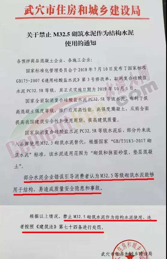 住建部門(mén)通知,禁止 M32.5 砌筑水泥作為結(jié)構(gòu)水泥使用