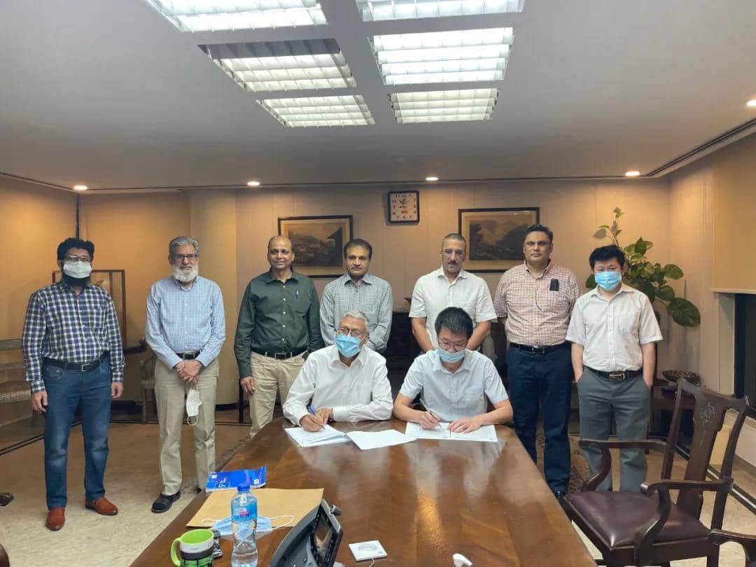 DG水泥廠總經(jīng)理Raza Mansha、技術(shù)總監(jiān)Arif Bashir、中材節(jié)能國(guó)際工程分公司市場(chǎng)營(yíng)銷部副部長(zhǎng)王建峰、市場(chǎng)經(jīng)理劉庚等相關(guān)人員參加了上述兩個(gè)項(xiàng)目的簽約儀式。