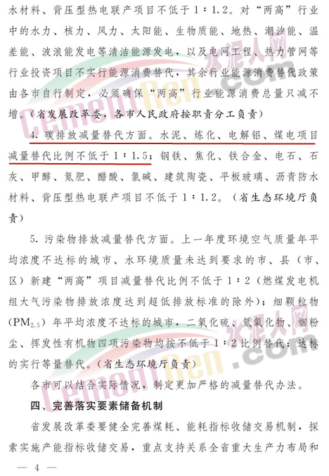 能源消費(fèi)減量替代方面:水泥減量替代比例不低于1∶1.5;