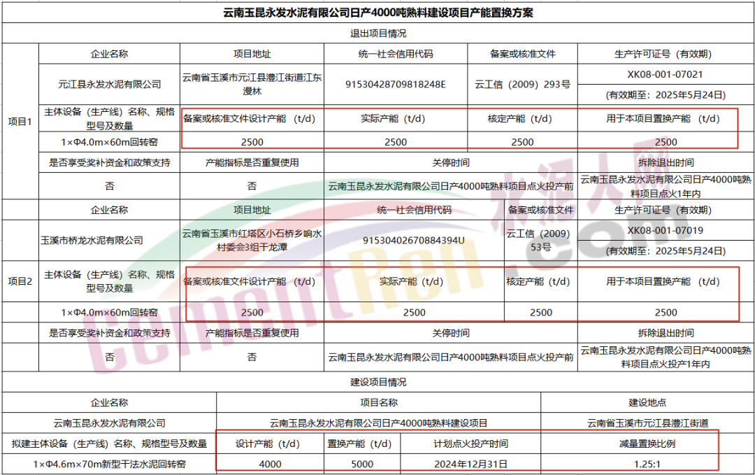 6月22日,云南省工信廳發(fā)布《云南玉昆永發(fā)水泥有限公司日產(chǎn)4000噸熟料建設(shè)項(xiàng)目產(chǎn)能置換方案公示》稱,按照相關(guān)文件要求,現(xiàn)將元江縣永發(fā)水泥有限公司2500t/d、玉溪市橋龍水泥有限公司2500t/d水泥熟料生產(chǎn)線以1.25:1的比例減量置換至云南玉昆永發(fā)水泥有限公司用于新建一條4000t/d熟料項(xiàng)目,計(jì)劃2024年12月31日點(diǎn)火。公示期為2021年6月23日至7月6日。具體公示如下: