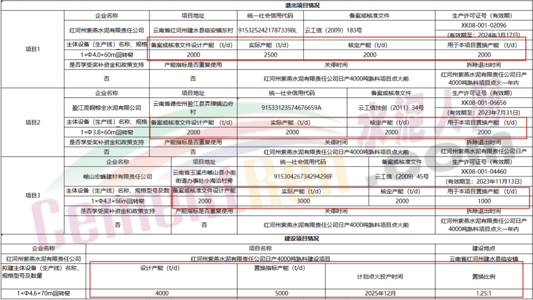 24日,云南省工信廳發(fā)布《紅河州紫燕水泥有限責(zé)任公司日產(chǎn)4000噸水泥熟料建設(shè)項(xiàng)目產(chǎn)能置換方案公示》稱,按照相關(guān)文件要求,現(xiàn)將紅河州紫燕水泥有限責(zé)任公司2000t/d、盈江昆鋼榕全水泥有限公司2000t/d、峨山宏峰建材有限責(zé)任公司1000t/d水泥熟料生產(chǎn)線以1.25:1的比例減量置換至紅河州紫燕水泥有限責(zé)任公司用于新建一條4000t/d熟料項(xiàng)目。公示期為2021年6月24日至7月7日。具體公示如下: