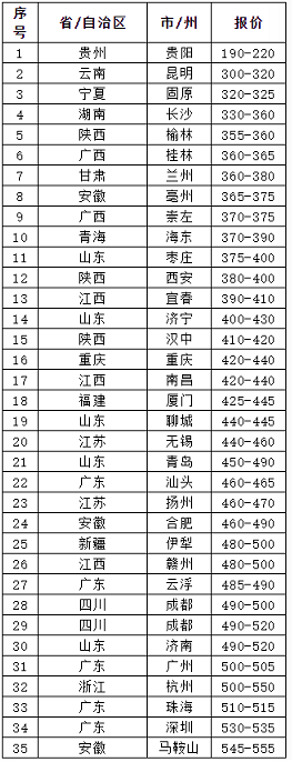 各區(qū)域PO42.5散裝水泥市場(chǎng)報(bào)價(jià)一覽