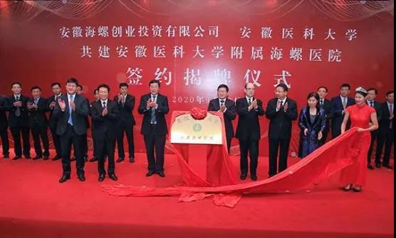 2020年9月30日上午,安徽海螺創(chuàng)業(yè)投資有限公司與安徽醫(yī)科大學(xué)共建“安徽醫(yī)科大學(xué)附屬海螺醫(yī)院”簽約揭牌儀式在海螺國際會議中心隆重舉行。此次安徽醫(yī)科大學(xué)附屬海螺醫(yī)院簽約揭牌,既是校企強(qiáng)強(qiáng)聯(lián)合、互利共贏的新典范,也是蕪湖醫(yī)療衛(wèi)生事業(yè)發(fā)展的新航標(biāo)。