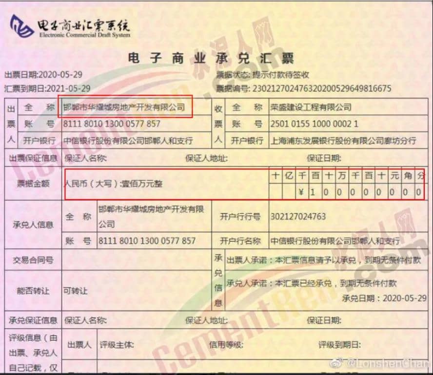 “商票逾期一個多月還要談?wù)蛊冢?rdquo;一債權(quán)人公司人員合法持有恒大地產(chǎn)集團控股的子公司:邯鄲華耀城房地產(chǎn)開發(fā)有限公司開具的商業(yè)承兌匯票一張100萬元,現(xiàn)已逾期一月多。