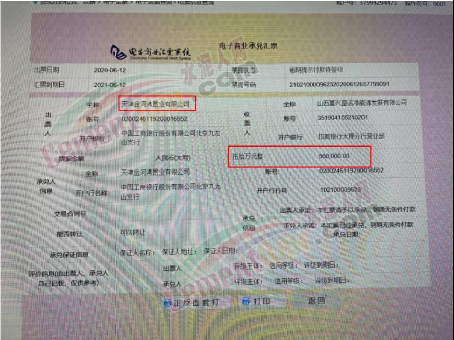 山西富興盛潔凈能源公司員工稱,公司因業(yè)務(wù)往來收到多張由實地地產(chǎn)集團(天津金河灣置業(yè)有限公司)簽發(fā)和承兌的商業(yè)承兌匯票,卻遲遲沒有付款,已知款項50萬。