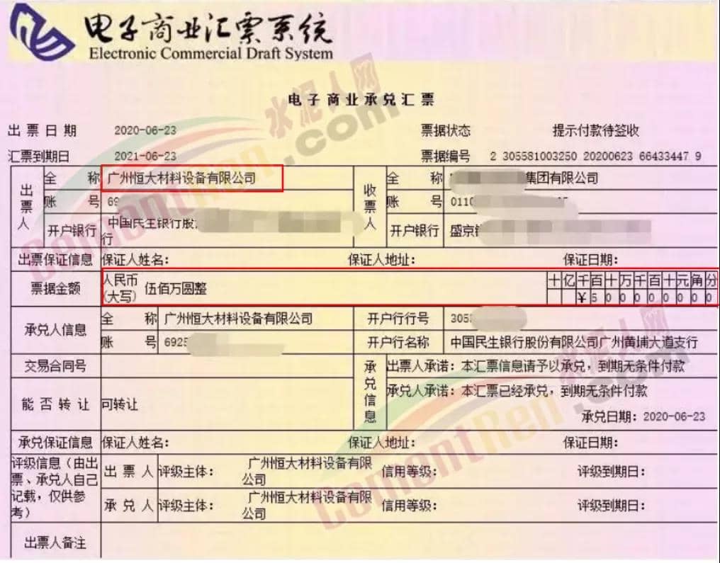 廣州恒大材料設(shè)備有限公司到期商票何時兌付?