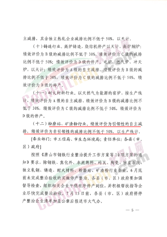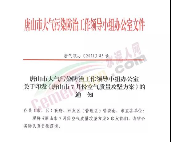 日前,唐山市大氣污染防治工作領(lǐng)導(dǎo)小組辦公室發(fā)布《唐山市7月份空氣質(zhì)量攻堅(jiān)方案》要求水泥行業(yè)按要求減排停產(chǎn)。