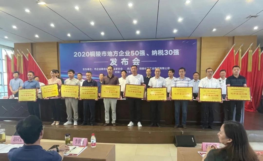 7月6日,2020銅陵市地方企業(yè)50強、納稅30強發(fā)布會在銅化集團召開。銅陵上峰喜獲“地方企業(yè)50強”“納稅30強”榮譽稱號,地方企業(yè)排名第14,納稅排名第3,銅陵市已經(jīng)連續(xù)9年向社會公開發(fā)布“銅陵市地方企業(yè)50強”,銅陵上峰連續(xù)9年入列。