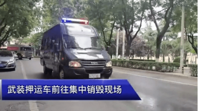 從視頻可見,集中銷毀地位于金隅冀東水泥鳳翔工廠。