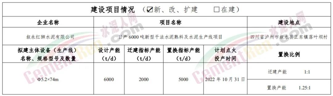 據(jù)水泥人網(wǎng)此前報(bào)道,浙江紅獅集團(tuán)(瀘州)敘永縣新型干法水泥熟料生產(chǎn)線建設(shè)項(xiàng)目,設(shè)計(jì)產(chǎn)能6000t/d,擬資20億元。