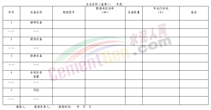 表1-3水泥生產(chǎn)企業(yè)主要用能設(shè)備表