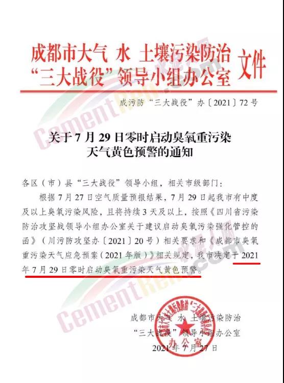 據(jù)水泥人網(wǎng)了解,成都市決定于7月29日零時啟動臭氧重污染天氣黃色預(yù)警。四川多地發(fā)布高溫橙色預(yù)警信號,成都、瀘州、達(dá)州、南充、遂寧、自貢都官宣進入“晴熱少雨”高溫模式。