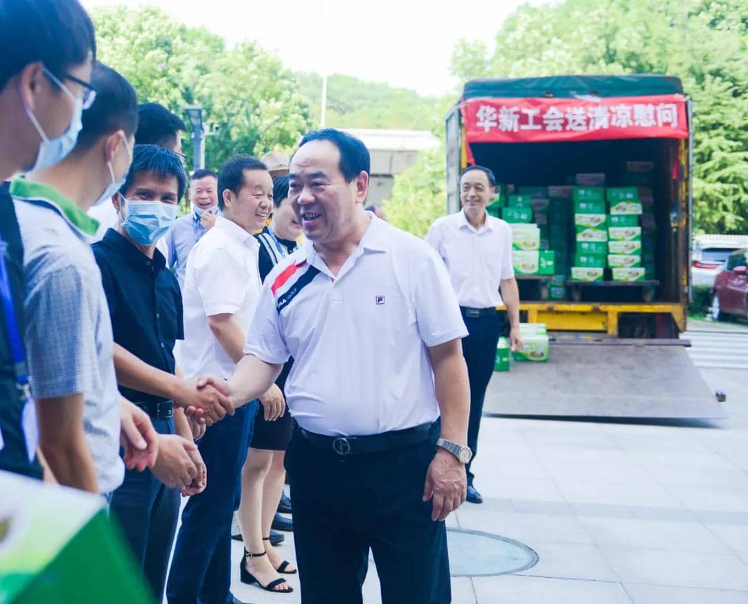 △席彭清宇(右四)為復(fù)工單位送慰問物資