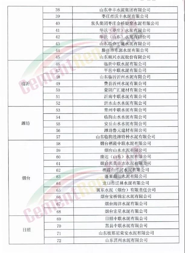 實(shí)施對(duì)象為山東省水泥熟料企業(yè)的熟料生產(chǎn)線,含特種熟料生產(chǎn)線和建通窯、不含山東魯北化工股份有限公司和山東匯泰再生資源有限公司的化工配套熟料生產(chǎn)線,名單共列出72家企業(yè)。