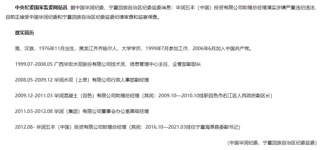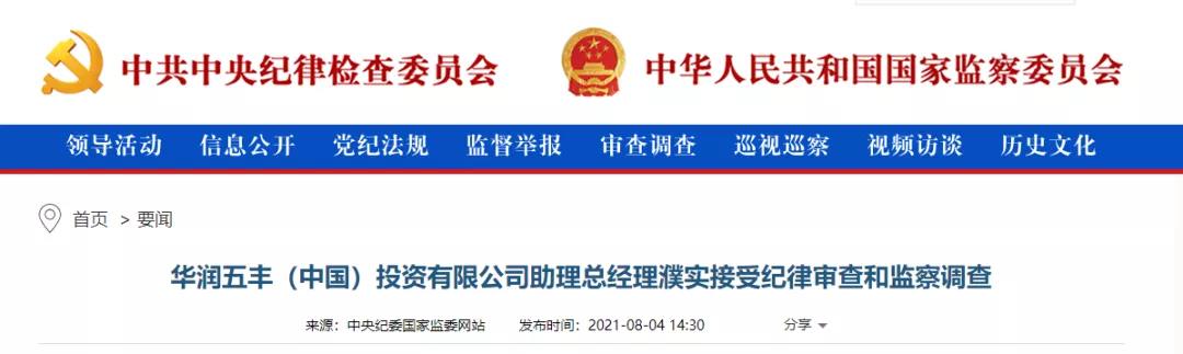 中央紀(jì)委國(guó)家監(jiān)委網(wǎng)站訊據(jù)中國(guó)華潤(rùn)紀(jì)委、寧夏回族自治區(qū)紀(jì)委監(jiān)委消息:華潤(rùn)五豐(中國(guó))投資有限公司助理總經(jīng)理濮實(shí)涉嫌嚴(yán)重違紀(jì)違法,目前正接受中國(guó)華潤(rùn)紀(jì)委和寧夏回族自治區(qū)紀(jì)委監(jiān)委紀(jì)律審查和監(jiān)察調(diào)查。