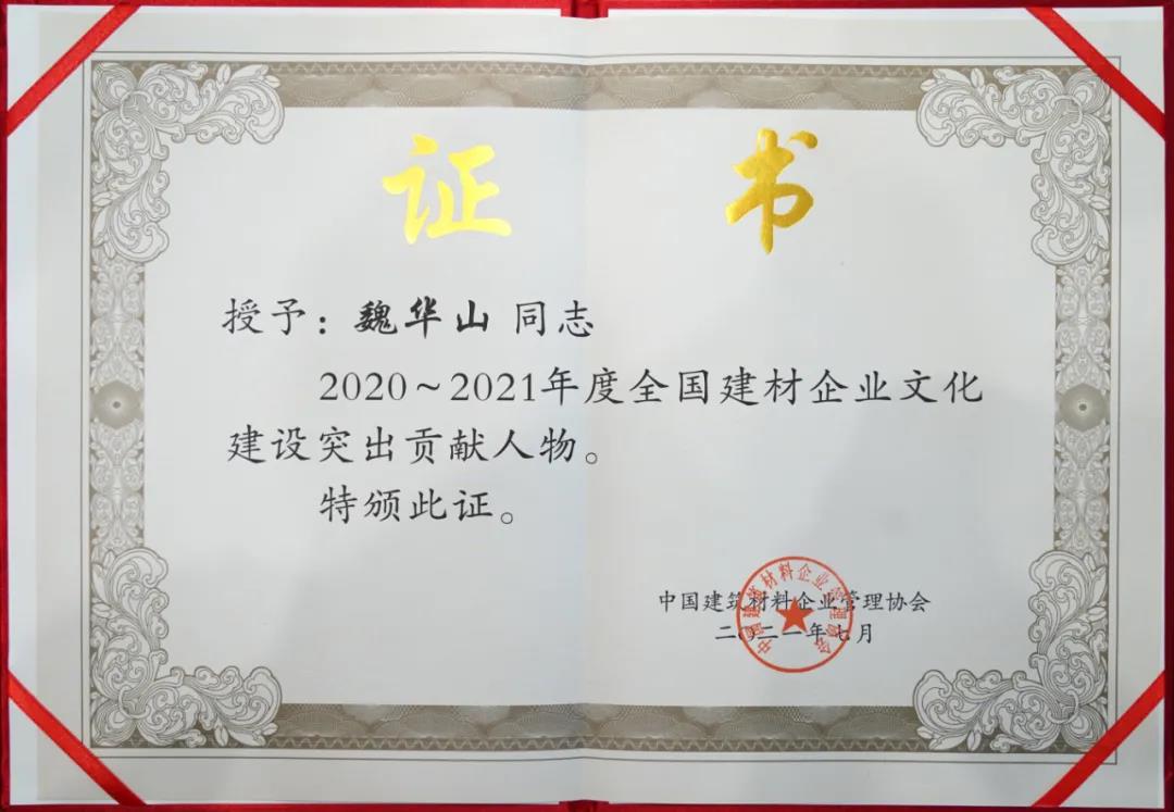 集團(tuán)董事長魏華山先生獲評全國建材企業(yè)文化建設(shè)突出貢獻(xiàn)人物