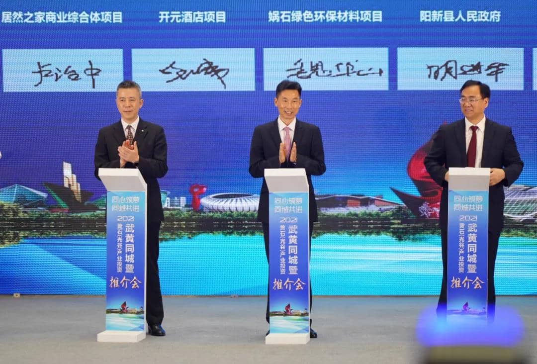 2021武黃同城暨黃石(光谷)產(chǎn)業(yè)投資推介會暨媧石集團(tuán)年產(chǎn)2000萬噸綠色環(huán)保建材生產(chǎn)線簽約儀式在武漢成功舉行
