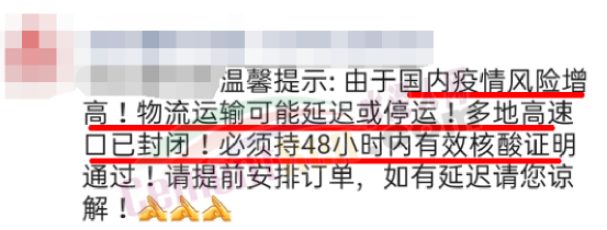 有司機(jī)表示“現(xiàn)在已經(jīng)全員檢測(cè)!但是各地防疫政策不同,有些區(qū)域即便有行程碼、健康碼仍難通行,因?yàn)槁芬呀?jīng)被堵死或挖斷了,有相關(guān)證明也沒用。”