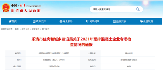 樂清通報(bào)2021年預(yù)拌混凝土企業(yè)專項(xiàng)檢查情況