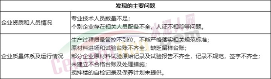 本次檢查中企業(yè)質(zhì)量保證體系運(yùn)營(yíng)情況及人員配備比較差的單位給予通報(bào)批評(píng):1、溫州銀龍建筑材料銷售有限公司;2、樂清市州際混凝土有限公司。