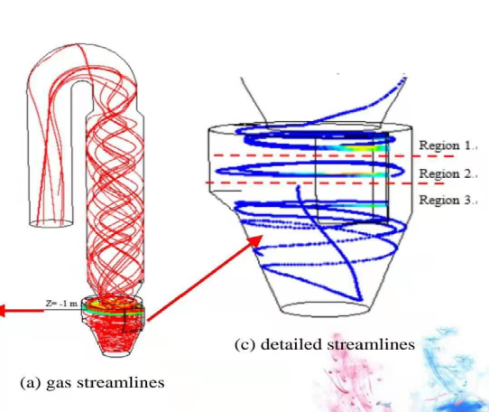 根據(jù)武漢理工大學(xué)謝峻林教授團(tuán)隊(duì)的數(shù)值模擬技術(shù),日照中聯(lián)水泥2#分解爐內(nèi)氣體流向如下圖: