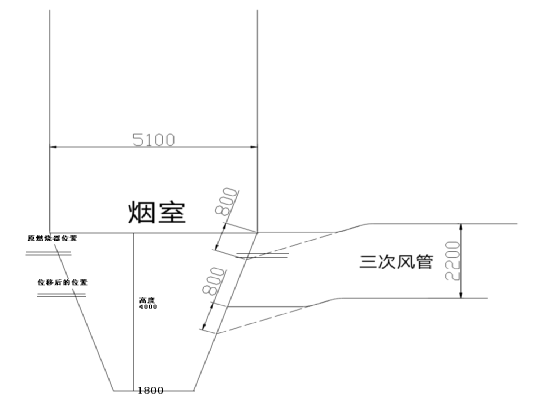 結(jié)合日照中聯(lián)水泥實(shí)際情況,經(jīng)多次分析研究,日照中聯(lián)水泥決定先對2#窯三次風(fēng)管入爐位置進(jìn)行調(diào)整,將原先下傾15°入爐管道改造為接近水平入爐,改變?nèi)敕纸鉅t三次風(fēng)方向,增大分解爐錐體還原區(qū)體積。同時將原尾煤燃燒器離三次風(fēng)管較遠(yuǎn)的一只位置下移,實(shí)現(xiàn)分級燃燒,從而產(chǎn)生足夠的還原劑CO。