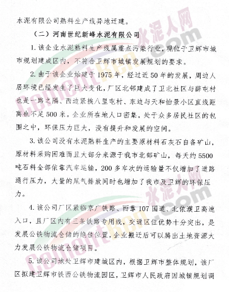 關(guān)于新鄉(xiāng)市振新水泥有限公司一條日產(chǎn)