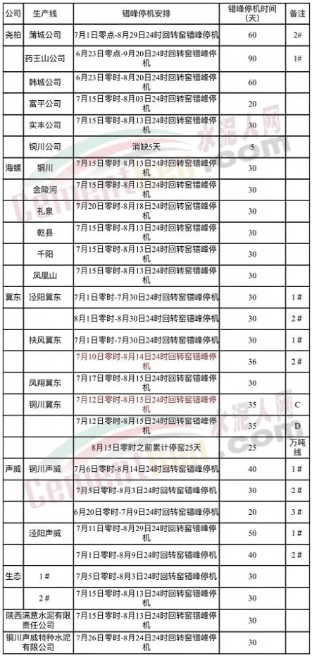山東省水泥熟料企業(yè)2021年8月份夏季錯峰生產(chǎn)的通知要求山東省內(nèi)72家企業(yè)從8月11日0點(diǎn)-8月30日24點(diǎn)停窯限產(chǎn)20天。