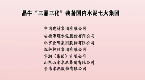 四、中國十大水泥集團(tuán)中的七大集團(tuán)分布的26個(gè)省的300條生產(chǎn)線的20多個(gè)部位裝備了晶牛“三晶三化”設(shè)備,均收到理想效果